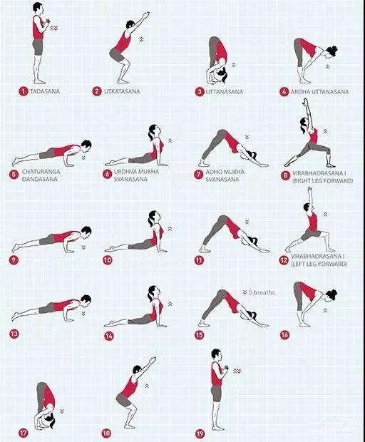 经典基础序列,覆盖全身肌群,核心用在课程前 10 分钟热身,唤醒身体 + 建立呼吸节奏。